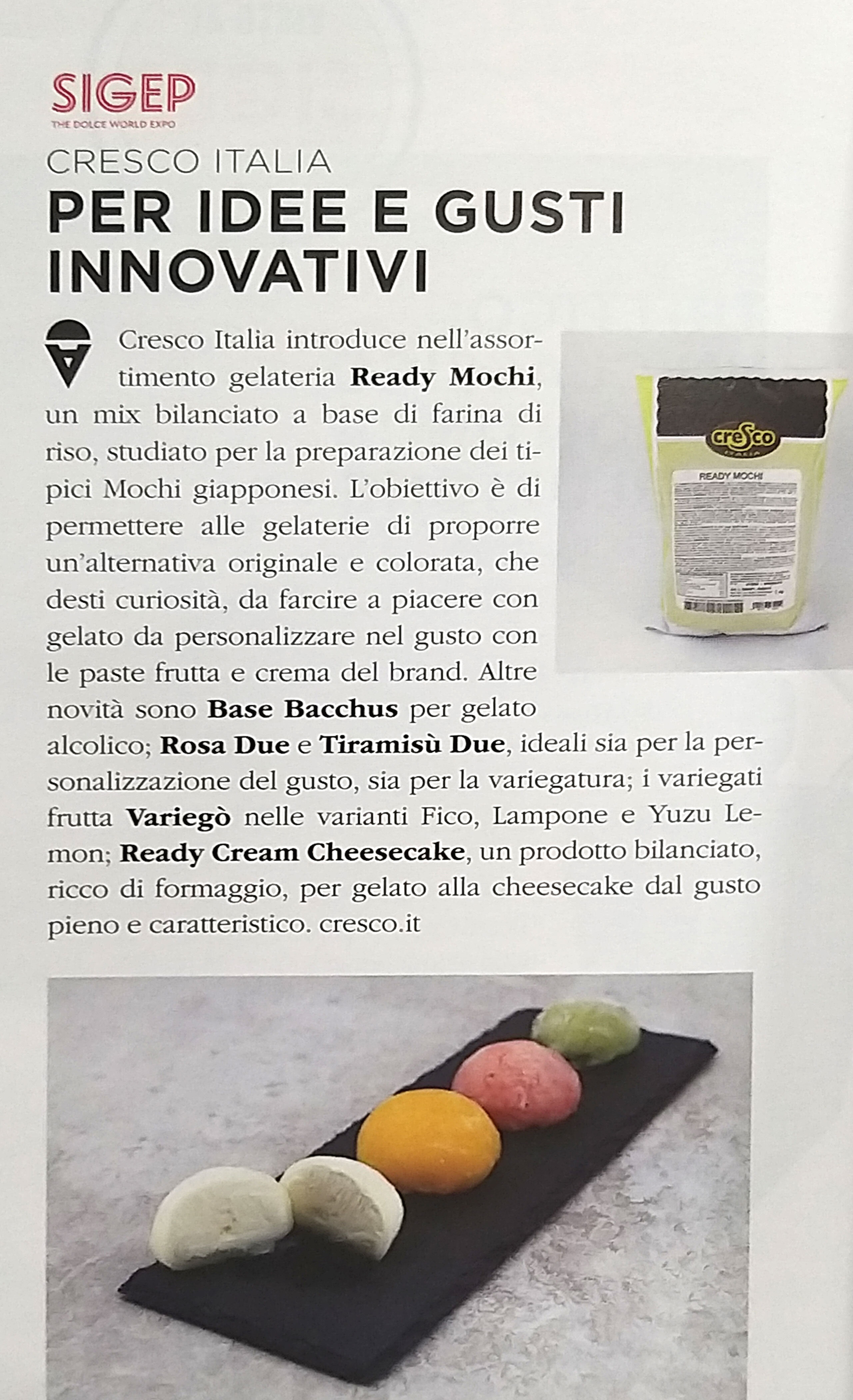 La rivista "Il Pasticcere e il Gelatiere italiano" parla delle nostre novità gelateria.