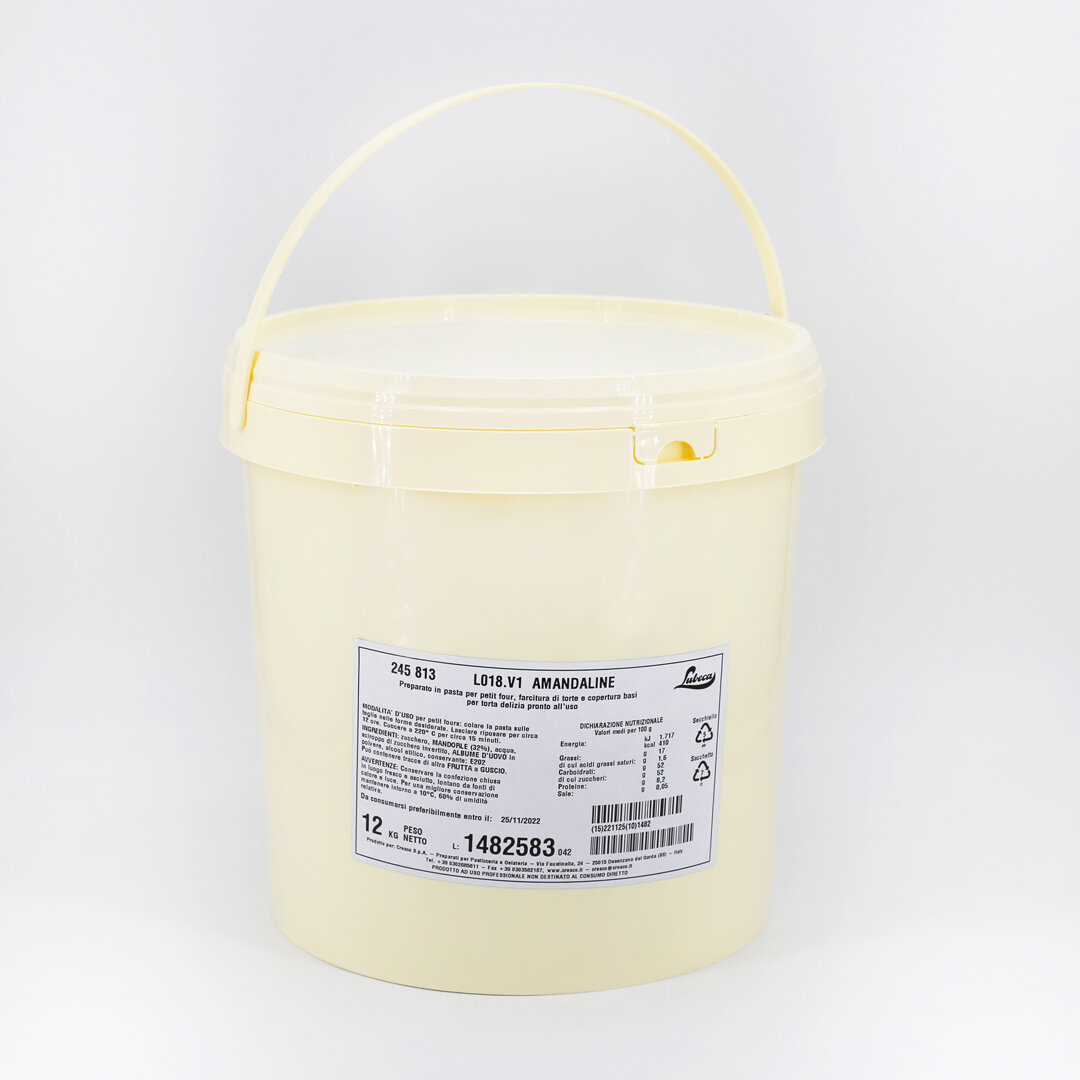 Preparato in pasta da utilizzare in pasticceria per petit four, farcitura di torte e copertura basi per torta delizia. Pronto all’uso. Con il 32% di mandorle.