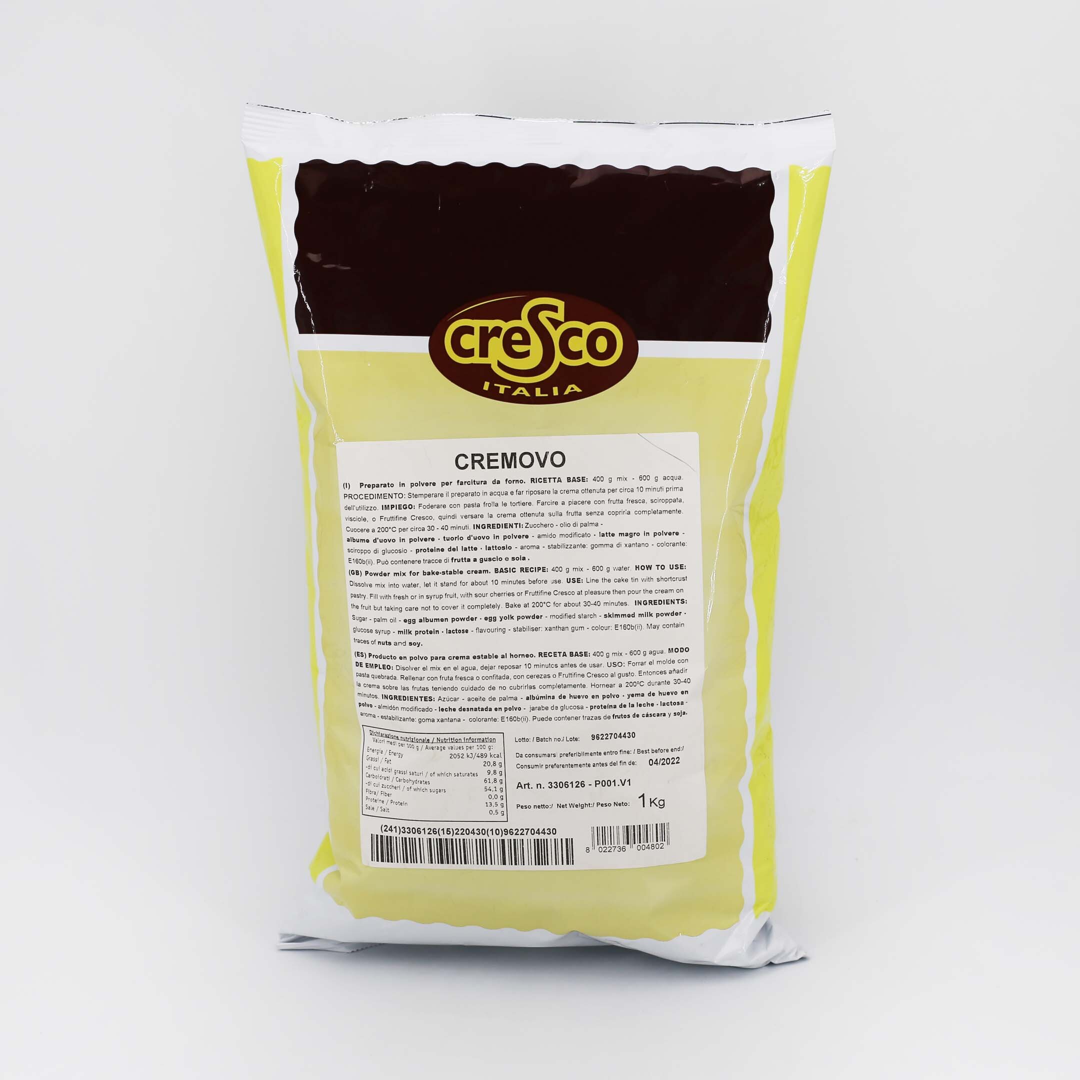 Preparato in polvere per farcitura da forno alla crema. Da utilizzare nei dolci da forno come copertura finale o come farcitura abbinato alla frutta fresca, alla frutta sciroppata, a confetture, ecc.