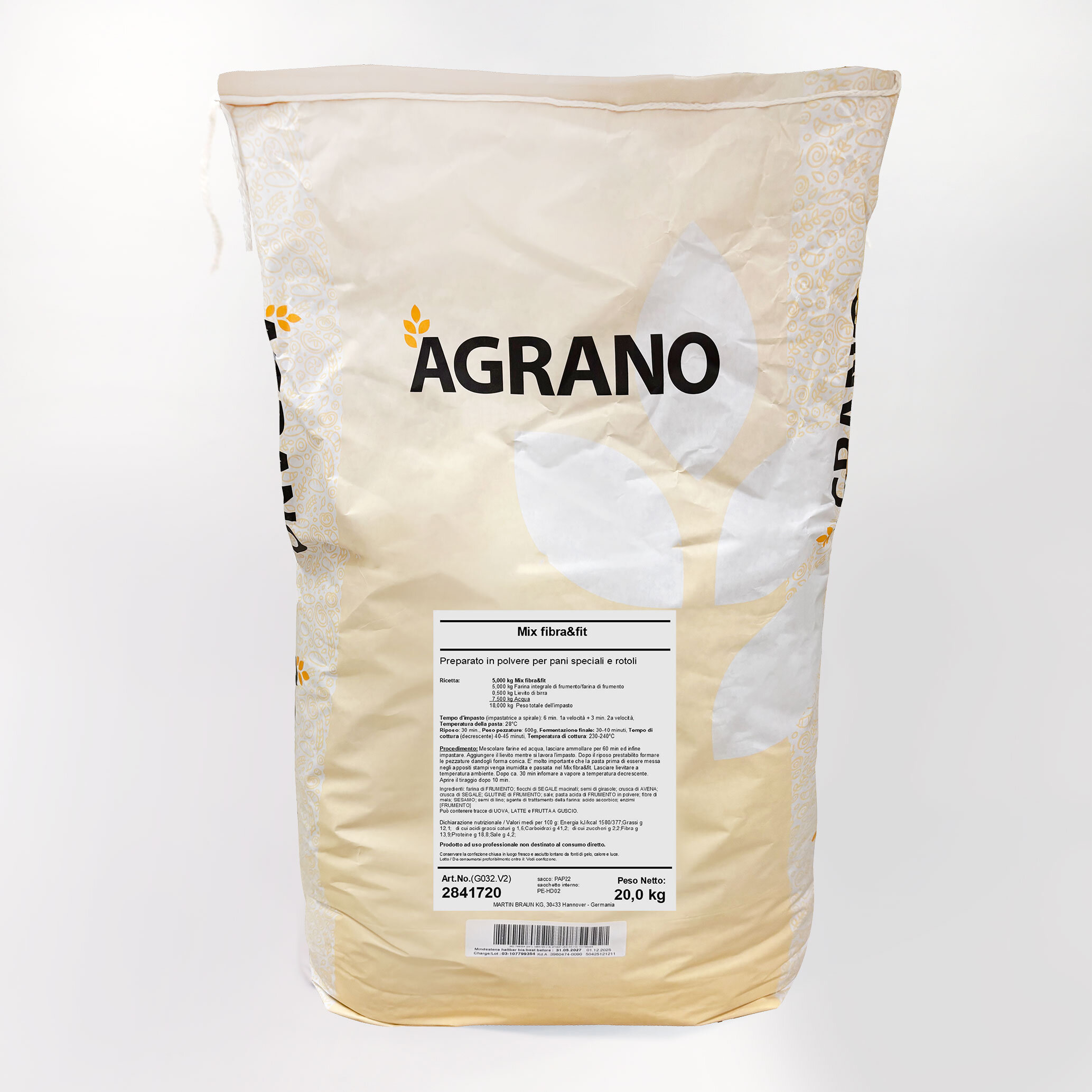 500g Fibra & fit + 500g farina integrale + 750g acqua + 10/30g lievito di birra