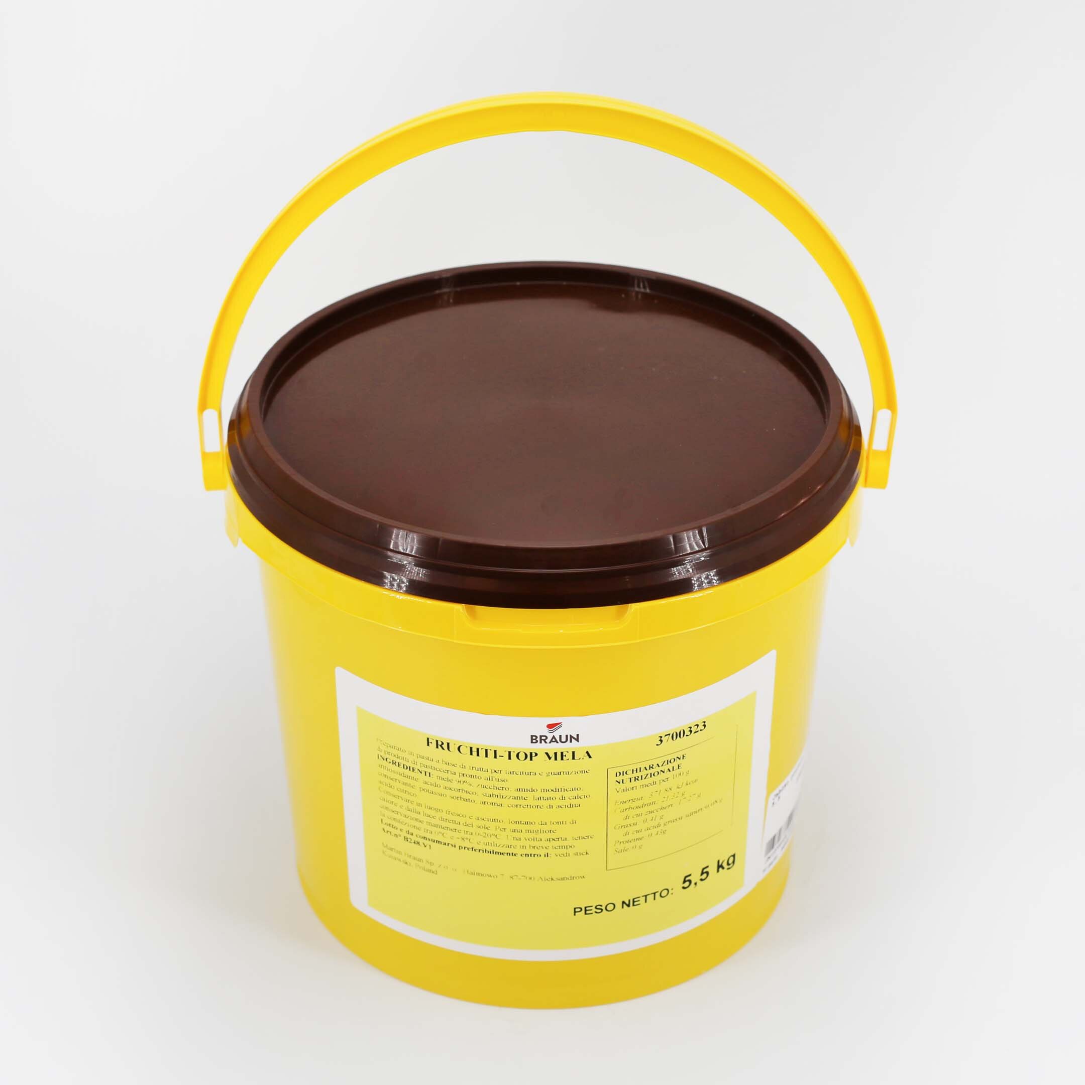Preparato in pasta a base di frutta per farcitura e guarnizione di prodotti di pasticceria con il 90% di mele in cubetti. Stabile alla cottura e alla congelazione