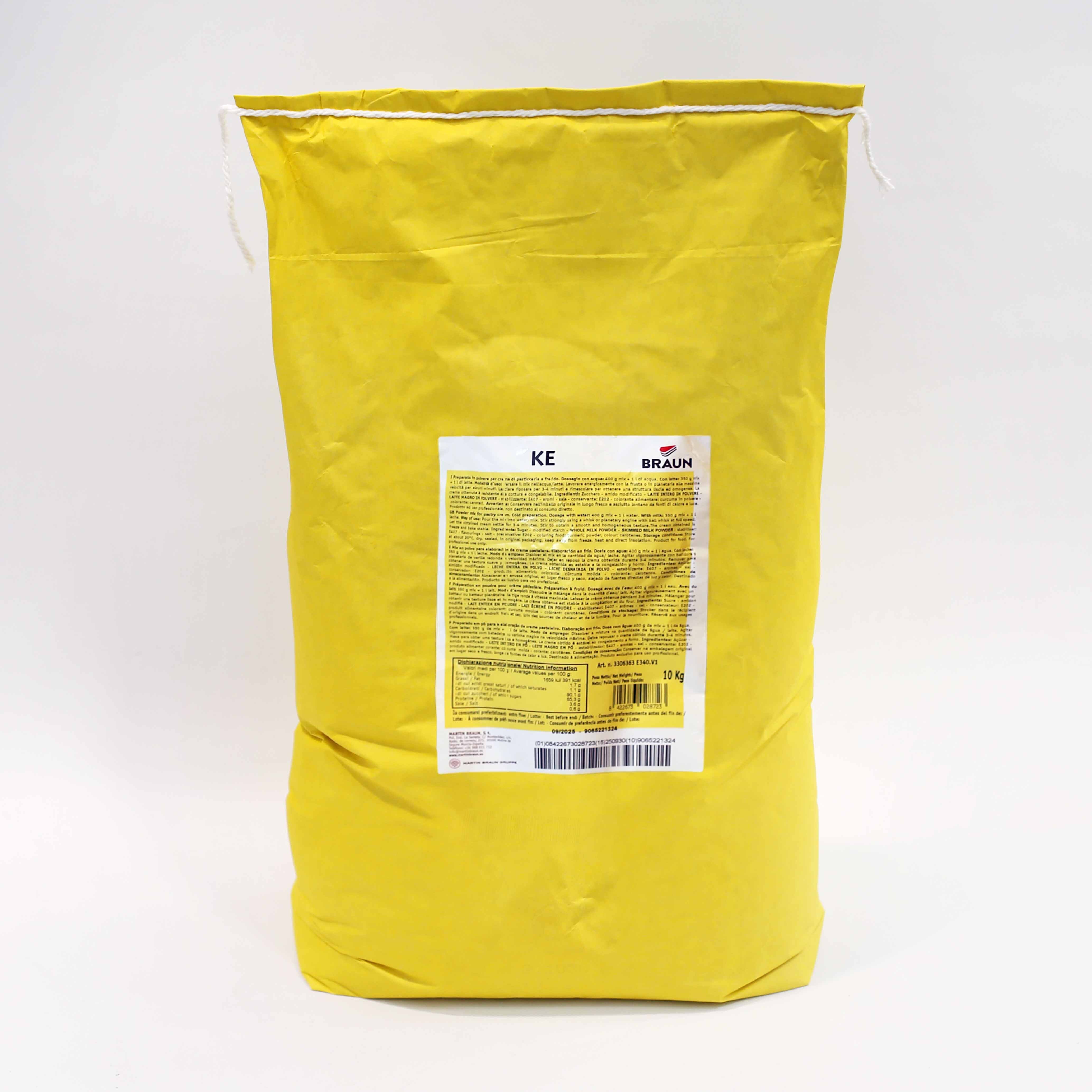 Preparato in polvere per crema di pasticceria a freddo. Ideale per farciture, torte alla frutta, dolci da forno, crostate, fagottini, sfoglia alla crema. Per creme da congelare e chantilly, bavaresi in combinazione con la panna e salse di crema da versare. La crema ottenuta è resistente alla cottura e congelabile.
