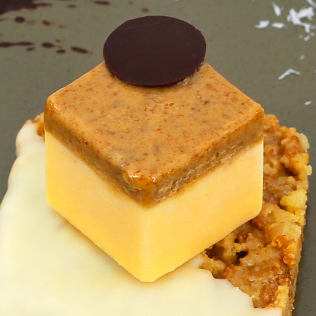 Preparato in pasta per farcitura con biscotti a scaglie e frutta disidratata. Ideale per aggiungere una nota croccante a tutti i dessert (torte, semifreddi, cheesecake, mousse, crostatine, monoporzioni ecc.). Per farcire macarons, lollipop, truffles, praline, ecc.