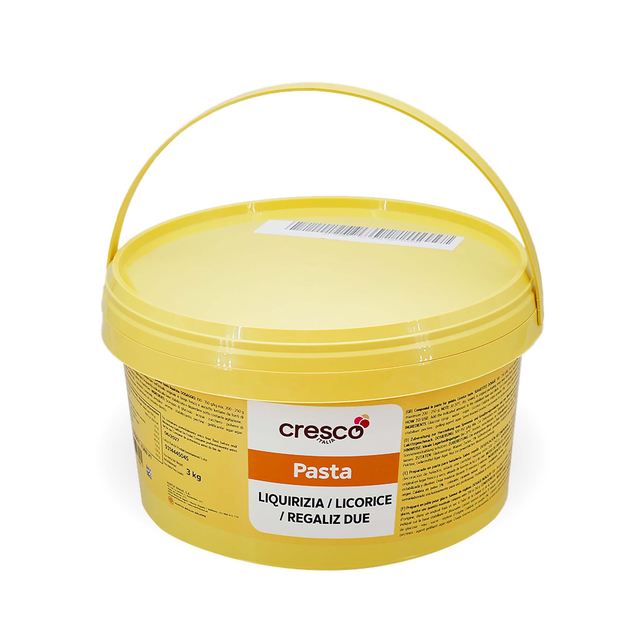 Preparato in pasta per gelateria e pasticceria, gusto liquirizia. Per la variegatura e la preparazione del gusto liquirizia in gelateria. In pasticceria per l’aromatizzazione di crema pasticcera, dessert, mousse, semifreddi, bavaresi, chantilly, panna, ecc.
