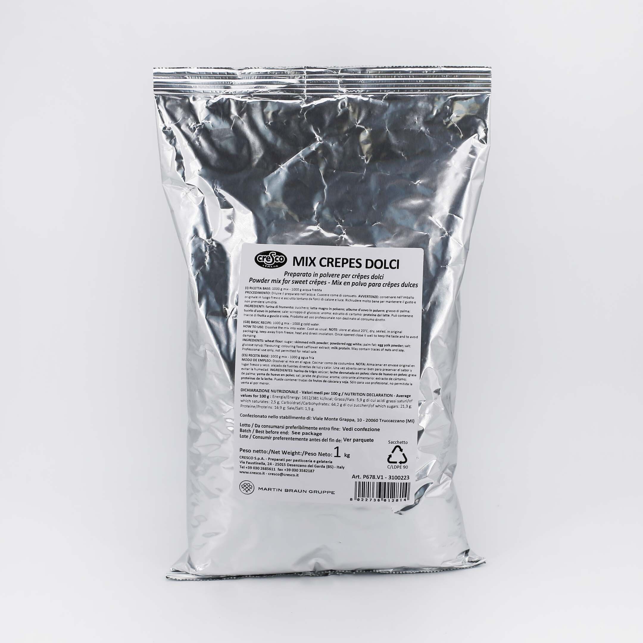 Preparato in polvere per crepes dolci. Ideale per la preparazione di crepes dolci in pasticceria, nella ristorazione collettiva, ecc. Congelabile per un utilizzo successivo.