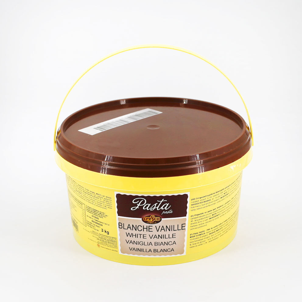 Pasta alla vaniglia bianca, per la preparazione del gusto vaniglia in gelateria. In pasticceria per l’aromatizzazione di crema pasticcera, dessert, mousse, semifreddi, bavaresi, chantilly, panna, ecc.