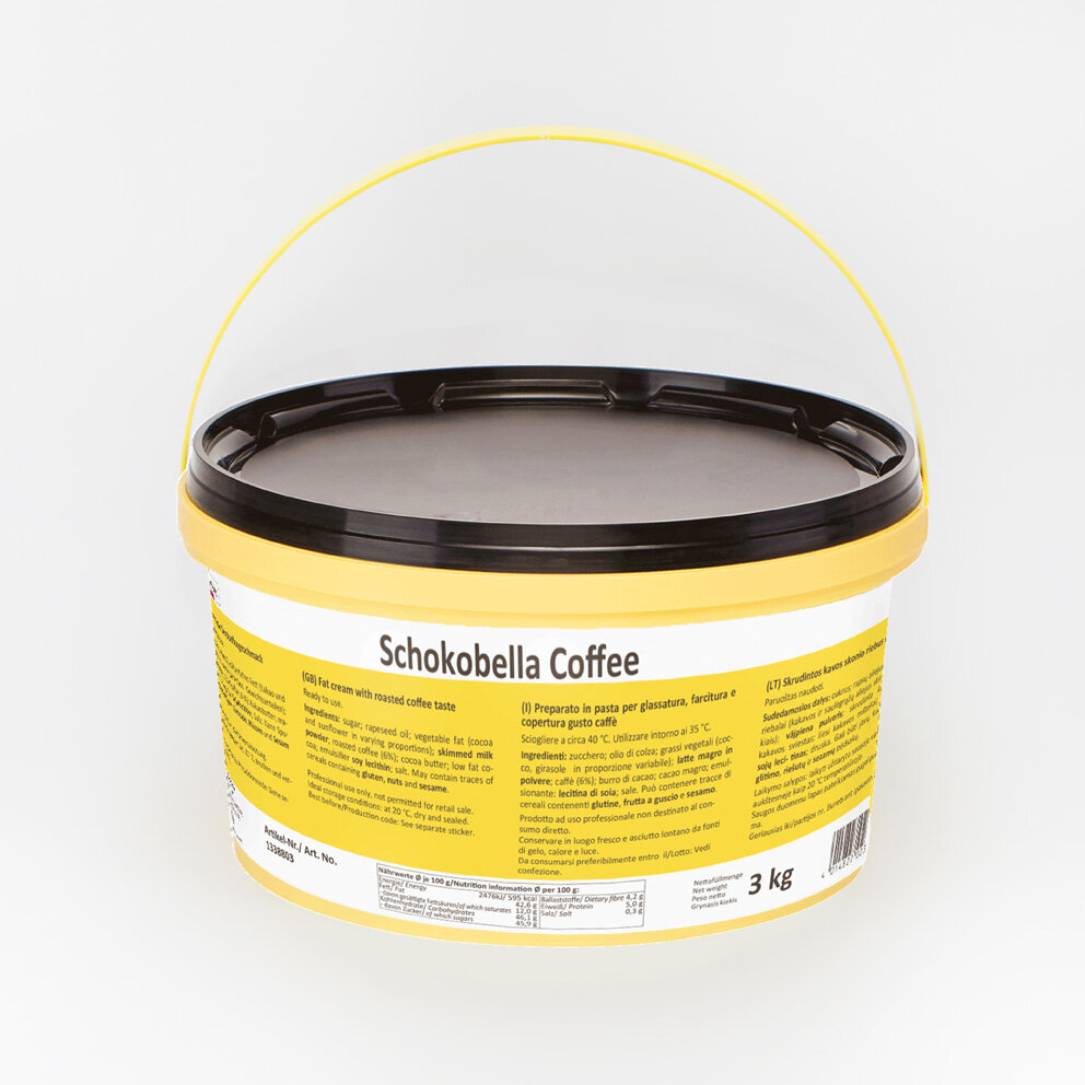 Preparato in pasta per glassatura, farcitura e copertura, gusto caffè. Ideale per cake, torte, profiterol, mignon, ecc. Può essere aggiunto agli impasti di biscotteria e arricchito con frutta secca. Ideale anche per aromatizzare creme/panna e per ripieni di pralineria.