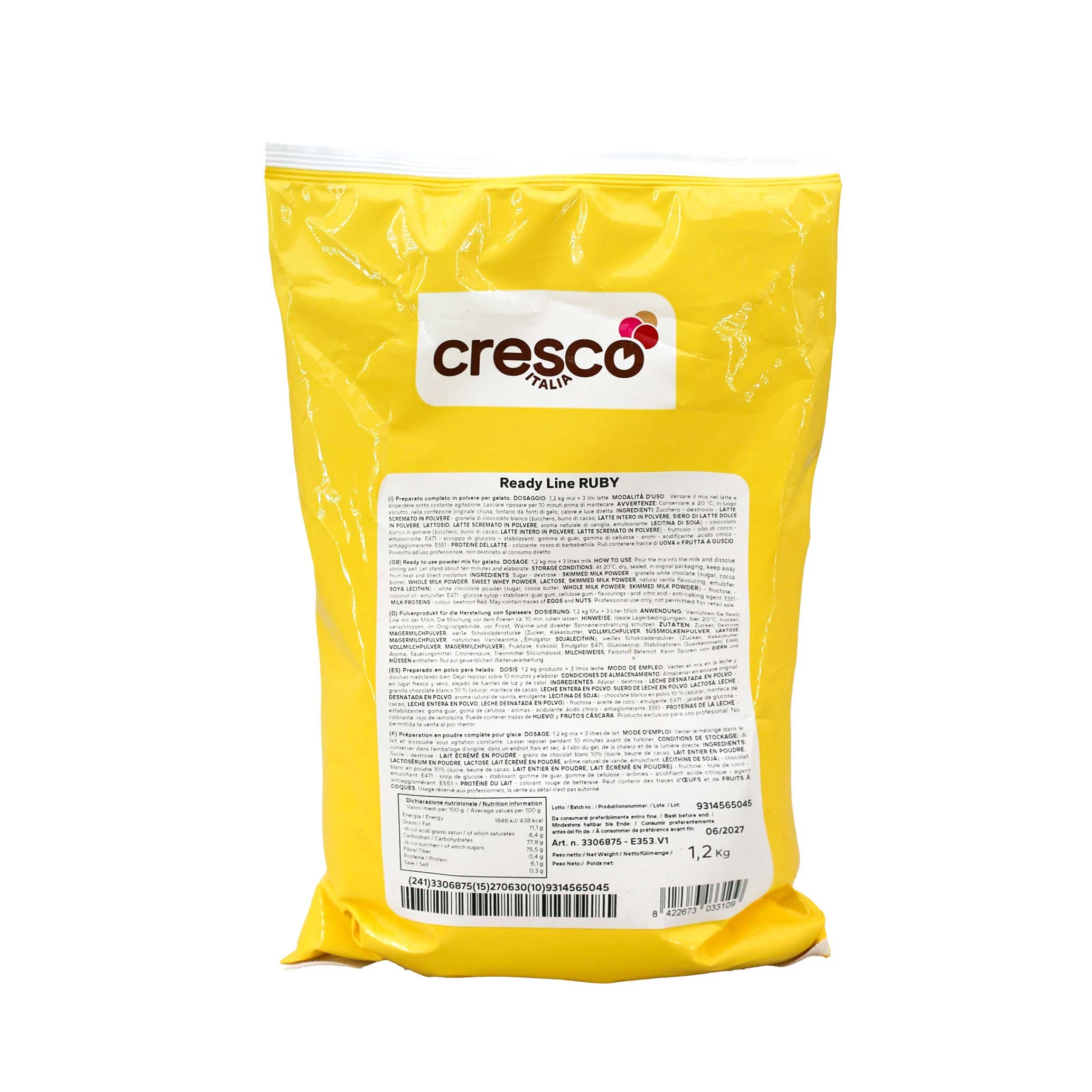 Preparato completo in polvere per la preparazione del gusto ruby in gelateria. Indicato anche per sorbetto da bere, granita, gelato soft,ecc.
