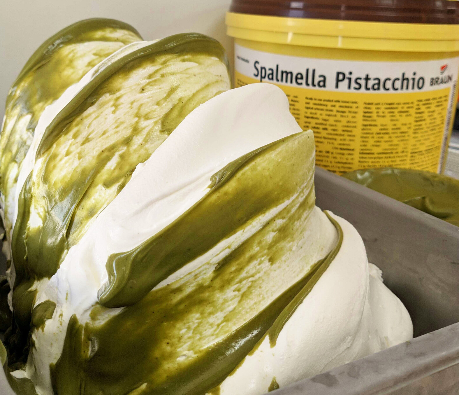Crema spalmabile gusto pistacchio per farcitura post forno di arrotolati, Pan di Spagna, biscotteria, ecc. Per ripieni di croissant, crepes, waffle, panini, brioches, ecc. Per scrivere e decorare dolci.