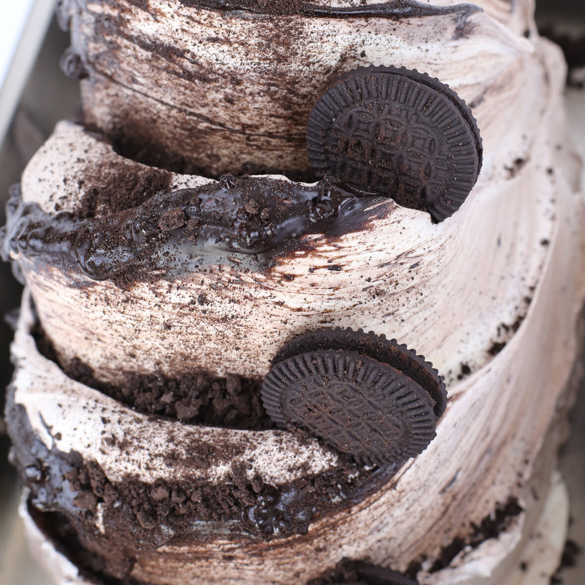 Variegatura in pasta per gelateria e pasticceria con biscotti al cacao in pezzi
