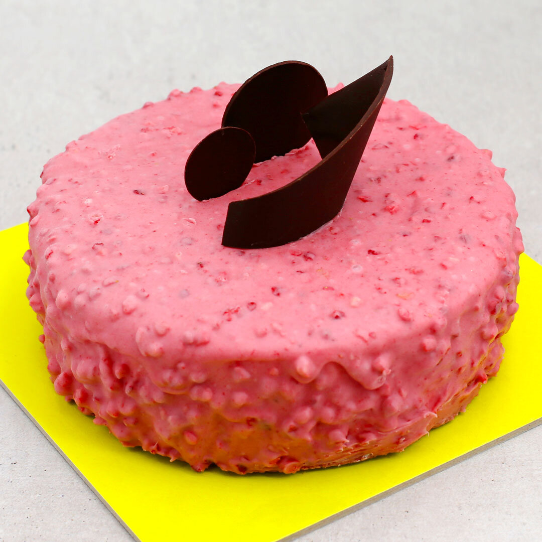 • CON PEZZETTI DI FRAGOLA DISIDRATATA EFFETTO CRUNCHY
