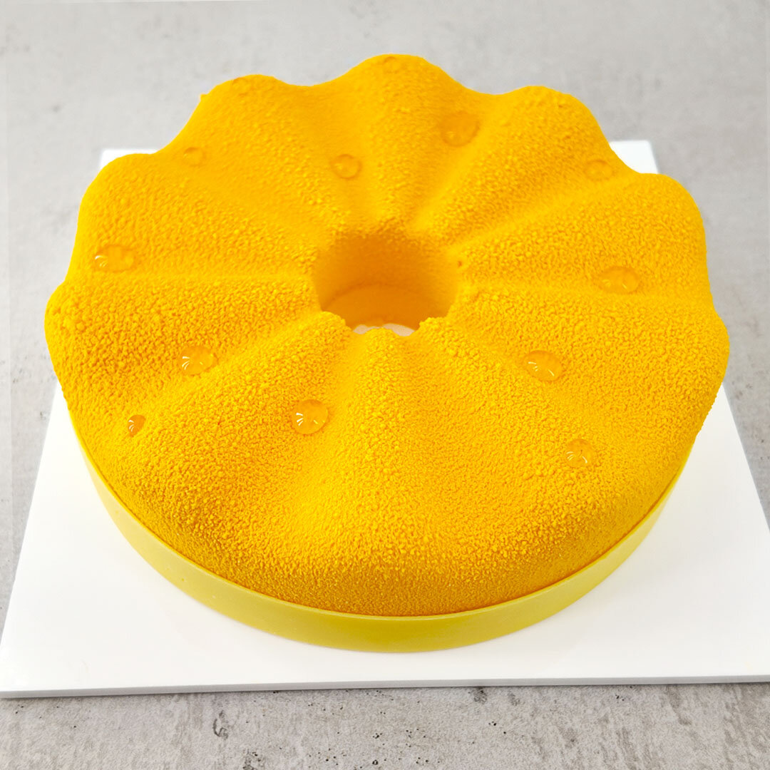 Sciogliere l’Alaska Ex. Neutro, nella purea scaldata a 40°C e integrare i cubetti di ananas.